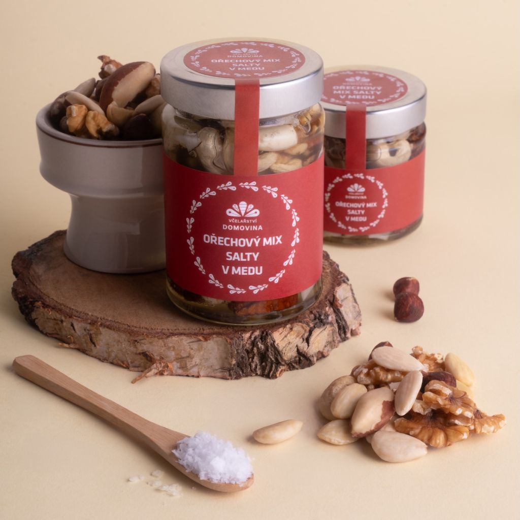 Orechový mix SALTY v mede vyrábame na našej farme Včelařství Domovina na okraji Vysočiny. Celý výrobný proces je vlastne jednoduchý: tradičné postupy, kvalitné suroviny a poctivé remeslo. To znamená stará dobrá ručná výroba, náš domáci med a žiadne chemikálie ani náhrady.
